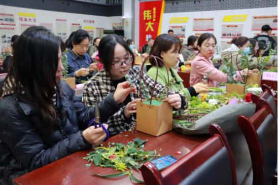 阳春三月,春暖花开。为庆祝国际第112个、我国第99个妇女节,构建和谐校园,展示米乐mile体育官网女教工良好的精神风貌,3月7日下午,由学校工会主办、米乐mile体育官网工会承办艺术插花活动在思齐楼多功能厅举行。校党委委员、工会主席周爱红出席并主持活动,各基层工会女职工代表50余人参加了活动。