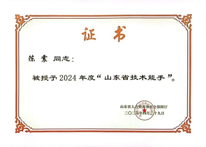 米乐mile体育官网教师荣获“山东省技术能手”荣誉称号