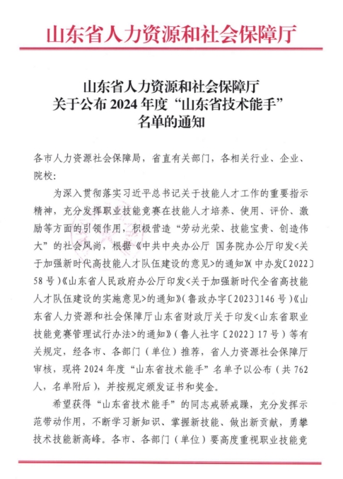 近日,山东省人力资源和社会保障厅印发《关于公布2024年度“山东省技术能力”名单的通知》,米乐mile体育官网米乐mile体育官网陈震老师榜上有名