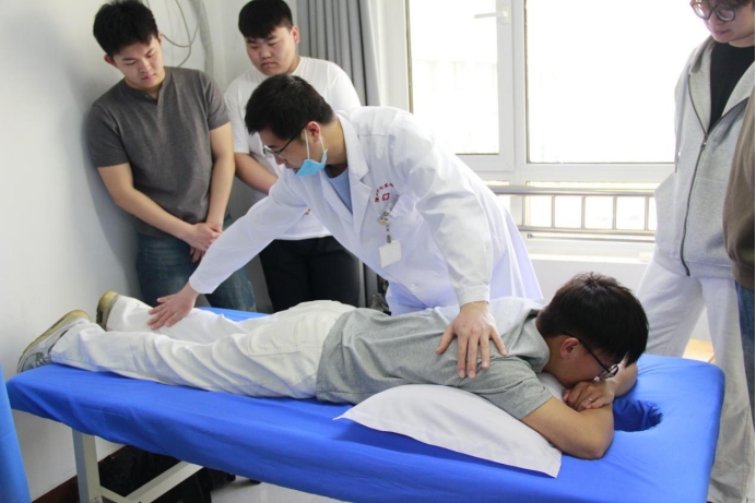 作为学院实践育人基地,德州市中医院在学生生活区投资建设了建筑面积562平方米的综合内科门诊。该门诊集内科诊疗与中医药适宜技术于一体,可提供静脉输液、西药与中药汤剂开具、理疗,以及针灸、推拿、灸法等10余种特色中医适宜技术服务。每周一、周五,医院医师会定期在门诊开展“开课授徒”活动,向师生系统传授推拿、拔罐、刮痧、耳穴、艾灸等中医保健技术,截至目前受益师生已超4000人次。
