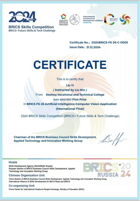 专业群着力打造高素质“双师型”教师团队。系统构建并实践以“师德铸魂·能力进阶·数字赋能”为核心的青年教师“三阶四维”培养模式,将青年教师入职后的成长过程划分为“站上讲台—站稳讲台—站好讲台”三个阶段,从师德、教学、实践、科研四个维度,全面赋能教师能力提升。现有教师中,不乏山东省教学名师、山东省技术能手、山东技能大师工作室带头人等行业领军人才,团队曾在2024金砖国家职业技能大赛人工智能计算机视觉应用赛项国际总决赛中斩获一等奖,在省级以上教学能力比赛中亦多次获奖。