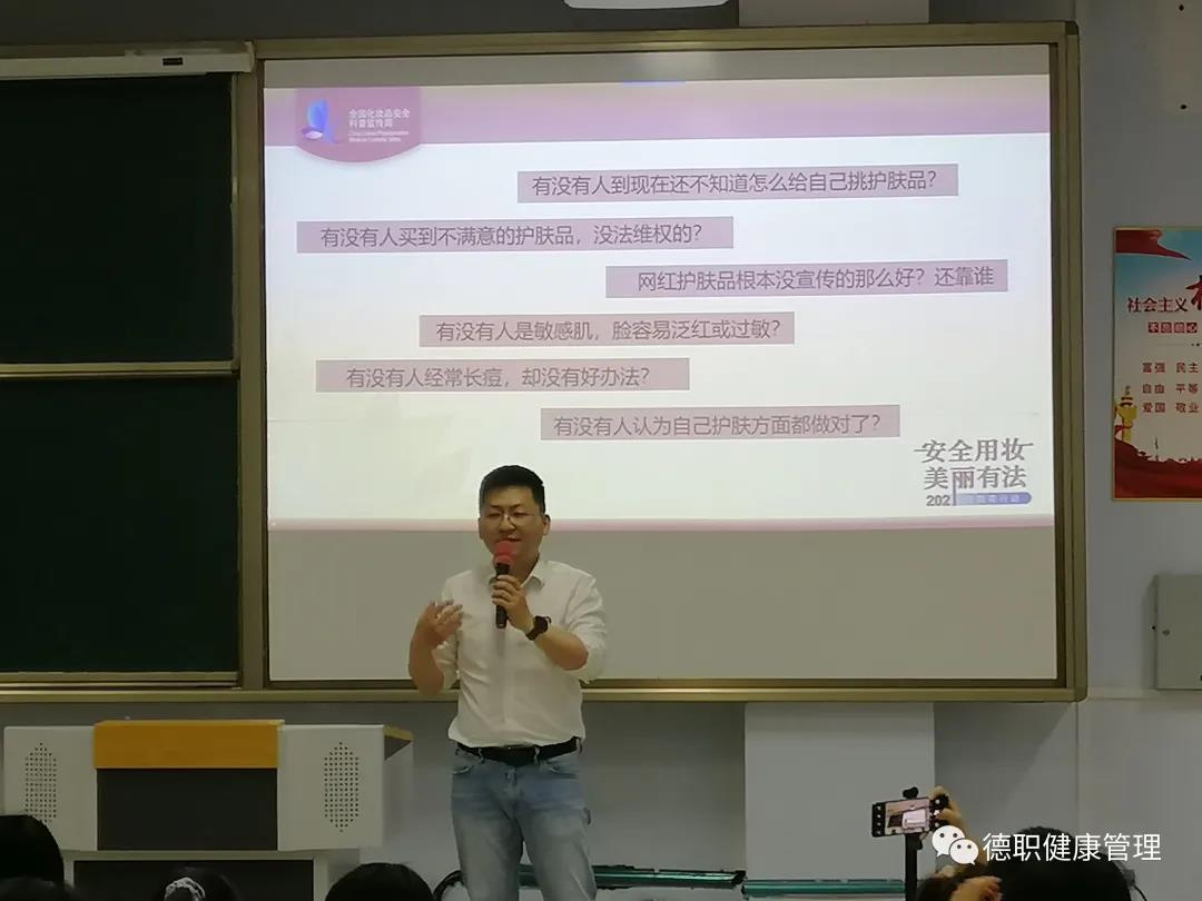 为进一步加强化妆品安全科普进高校,提高大学生消费者对化妆品安全使用的认知水平,引导大家科学合理地使用化妆品,扩大宣传活动影响范围,加大活动影响深度,米乐mile体育官网于5月26日在C座505举办了化妆品科普宣传讲座。此次讲座邀请了山东省化妆品行业协会美妆科普专业委员会主任委员张墨川先生来讲解化妆品的安全用法。
