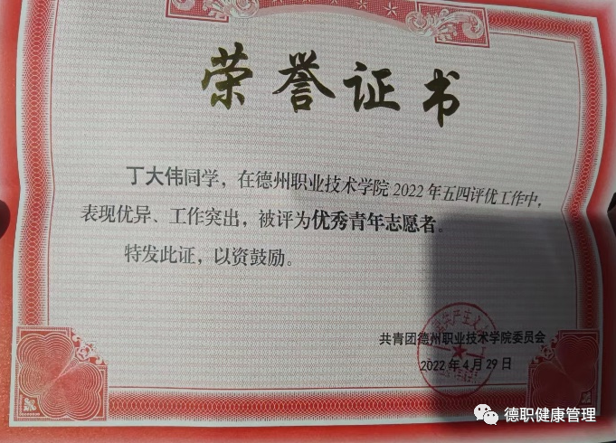 清醒而冷静、虔诚而执着、至信而深厚。他深知时代对青年之所望,牢记宗旨、坚定信念。在大二,通过自己的努力,成为了一名入党积极分子。平日里他主动加强政治学习,不断将先进思想付诸于实践,利用课余时间,积极参加各类志愿服务活动,获得了"优秀青年志愿者""抗击疫情最美志愿者"称号。